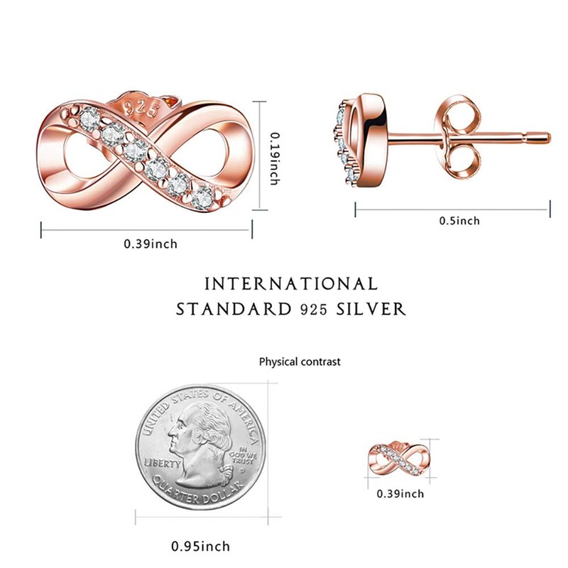 - High quality: women's stud earrings made of 925 sterling silver. The infinity pendant symbol is decorated with sparkling cubic zirconia to create a real eye-catcher. The exquisite polishing technique is used here