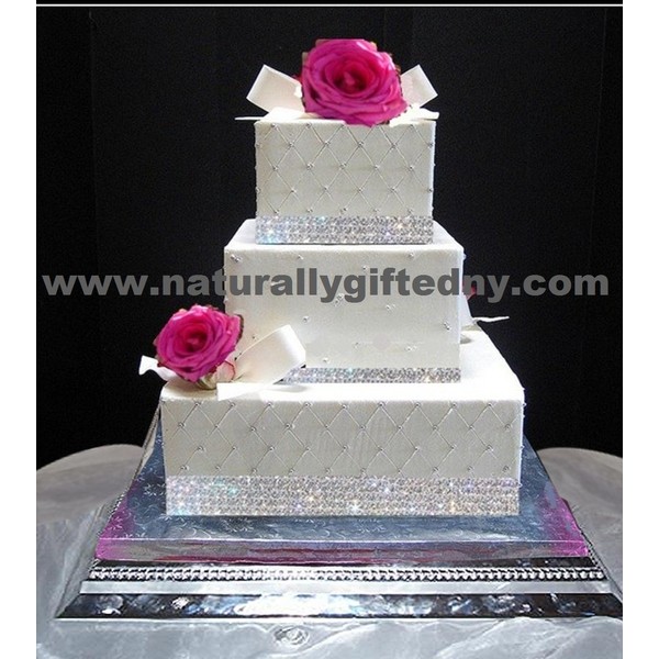 If you are looking for shine and sparkle, you are at the right place Metal Set Rhinestone Banding with premium quality Czech stones Crystal Ribbon Sold by the yard. Available in 2 to 4 rows. Width: 2-row ribbon is 1/2 inch high, 4-row ribbon is 1 inch high Clear "crystal" in a silver colored setting. This sale is for 4 yardS of 5 rows Create the look of elegance with this Crystal Rhinestone Banding 29.99 Crystal Cake Ribbon Rhinestone Banding Wedding Cake,1yd 29.99 If you are looking for shine and sparkle, you are at the right place Metal Set Rhinestone Banding with premium quality Czech stones Crystal Ribbon Sold by the yard. Available in 2 to 4 rows. Width: 2-row ribbon is 1/2 inch high, 4-row ribbon is 1 inch highClear "crystal" in a silver colored setting. This sale is for 1 foot of 4 rows ************************************************************************************ Round Cakes Find the circumference of the cake by multiplying the diameter (length from one side to the other) by 3.14. Then divide the total by 36 since there are three feet per yard. For example, a 12" cake in diameter would be calculated as: 12 x 3.14 = 37.68. 37.68/36 = 1.04 yards. You will need to order two yards to cover a 12" cake. Square Cakes Find the perimeter of the cake by adding together the lengths of each side of the cake. Then divide the total by 36 since there are three feet per yard. For example, a 12" square cake would be calculated as: 12 +12 + 12 +12 = 48. 48/36 = 1.3 yards. You will need to order two yards to cover a 12" square cake.