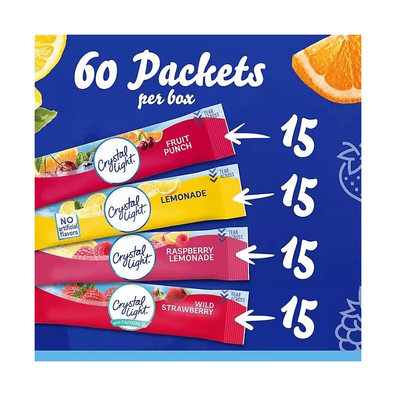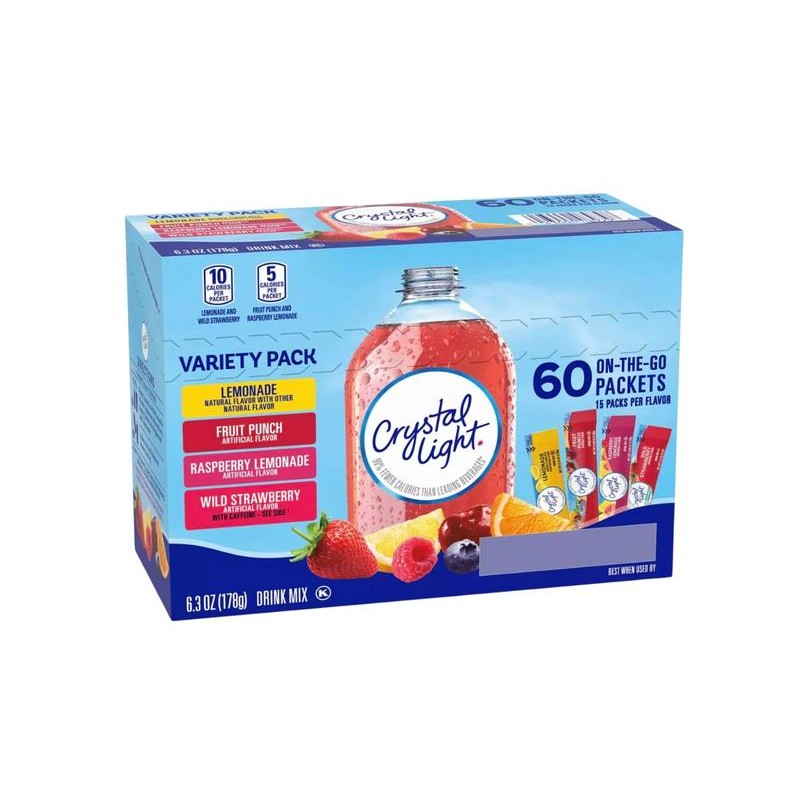 Crystal Light Drink Mix Packets, Variety Pack, Lemonade, Fruit Punch, Raspberry Lemonade, and Wild Strawberry