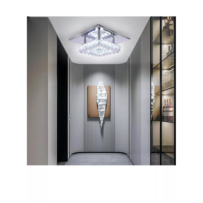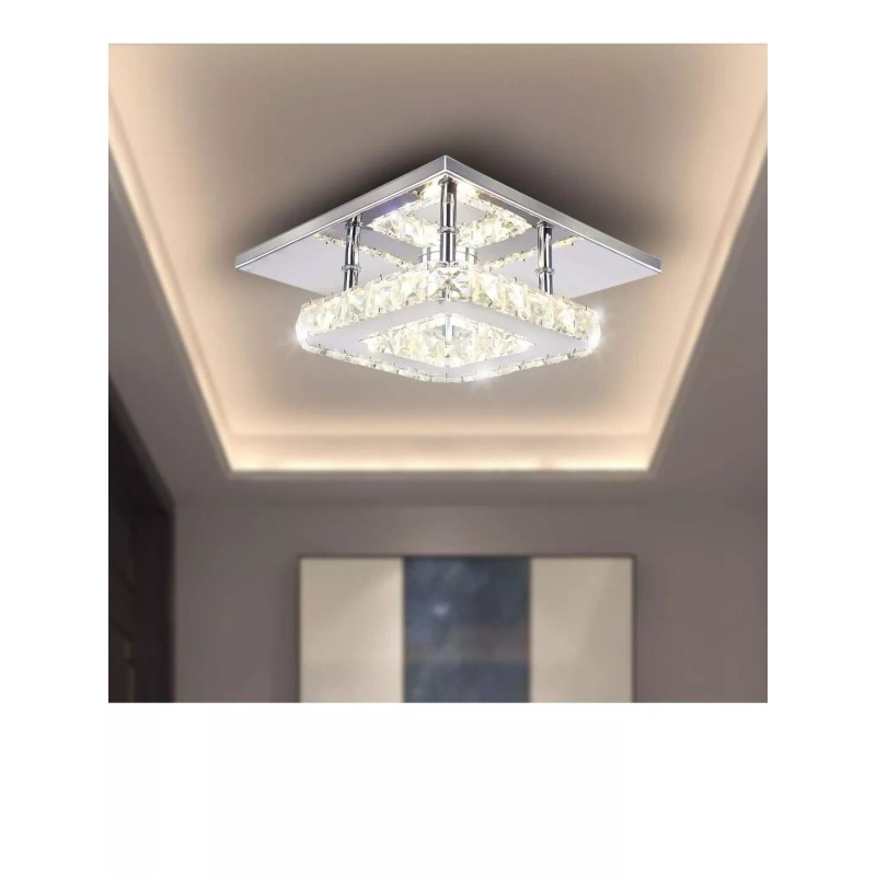 Crystal Light Modern Crystal Chandelier 7.9 Inches Led Ceiling Light MiniSquare Flush Mount