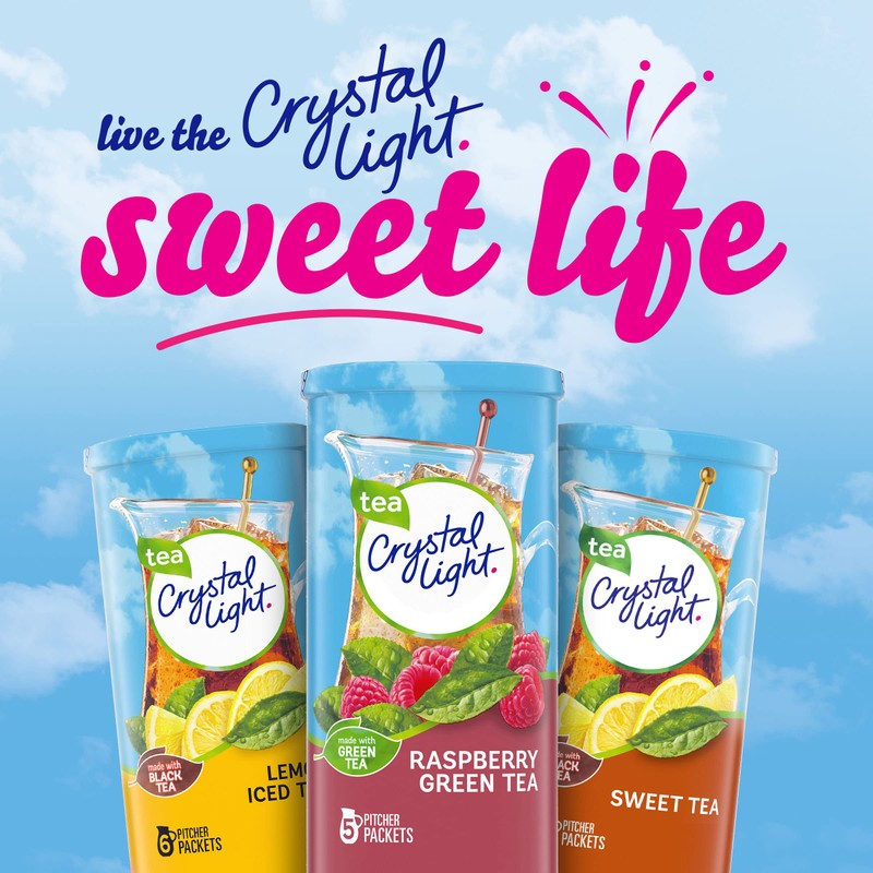 • Crystal Light Naturally Flavored Raspberry Green Tea Powdered Drink Mix delivers low calorie refreshment