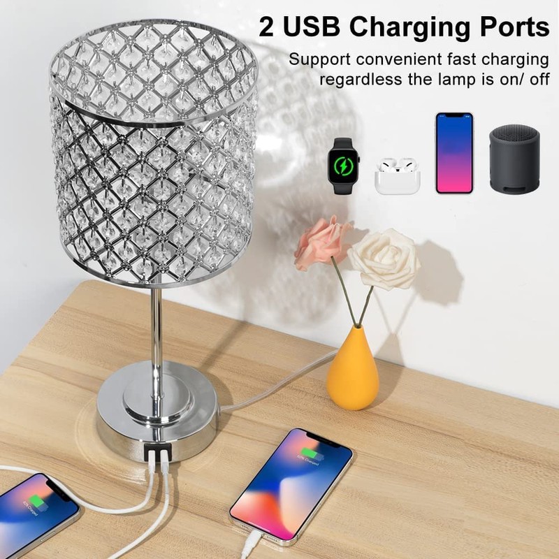 - 3-Way Touch Night Table Lamps: The sensitive sensor can help you get rid of the trouble of searching for the switch in the dark.Simply touch the silver lamps base part to choose Low, Medium, High, Off. The 3-way touch crystal lamps can be easily controlled by people of all ages