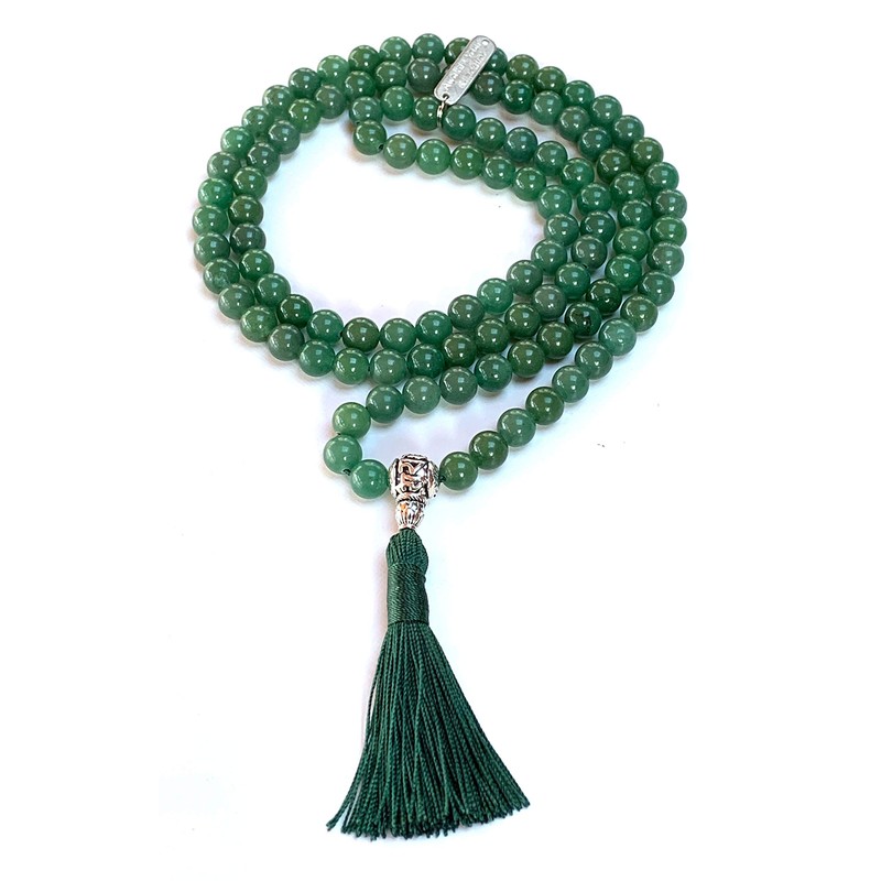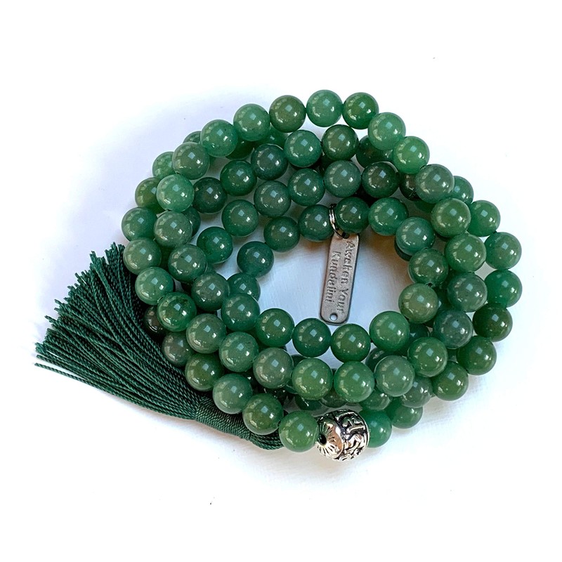 - Handmade in USA.Embrace the spirit of new beginnings and cultivate a positive outlook with this captivating Green Aventurine Mala Necklace! Each meticulously chosen, 8mm bead strung with love boasts a vibrant green hue, known to inspire creativity, independence, and emotional well-being. Aventurine is believed to resonate with the heart chakra, promoting feelings of love, compassion, and inner balance.