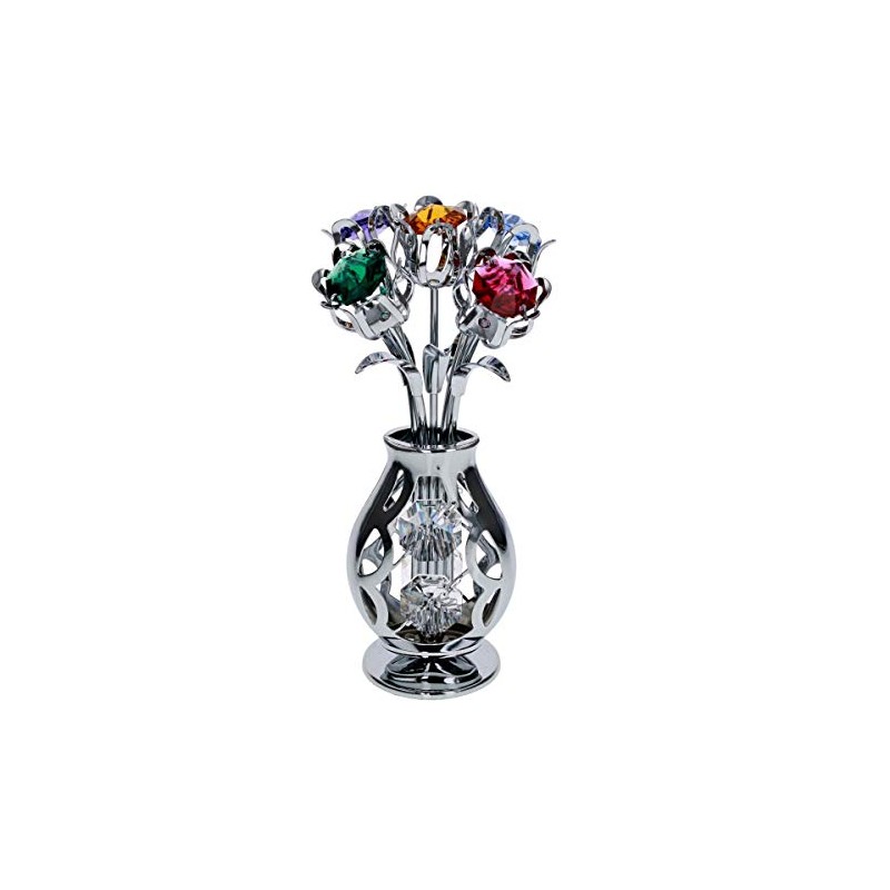 - The crystal tulips are blue, pink, lilac, amber and green and the four crystals on the vase are clear.