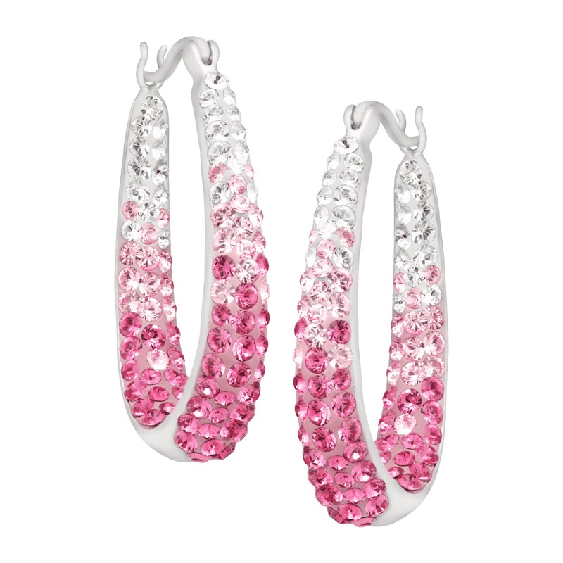 Crystaluxe Hoop Earrings with Rose Crystals in Sterling Silver with Gold Posts