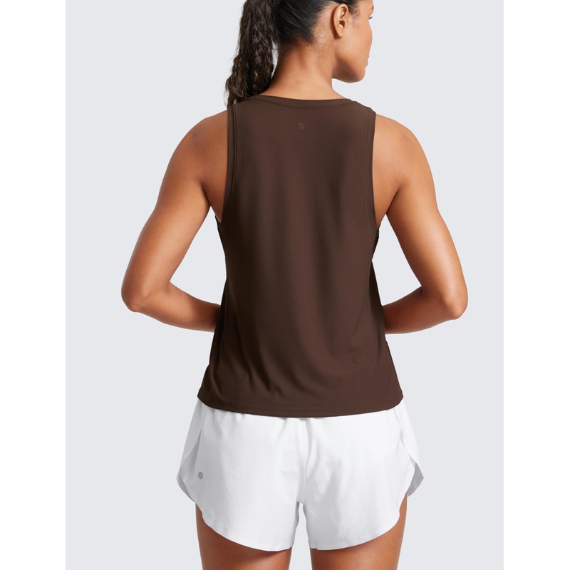 CRZ YOGA Cloudweight Crew Neck Workout Tanks Lightweight Athletic Gym Tops for Women Soft Basic Running Sleeveless Shirts Coffee Brown Medium