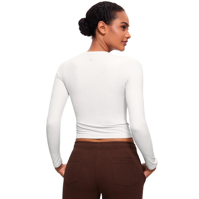 CRZ YOGA Softembrace Long Sleeve Shirts for Women Soft Crew Neck Fall Basic Tight Tops Fitted Casual Going Out T-Shirts White Large