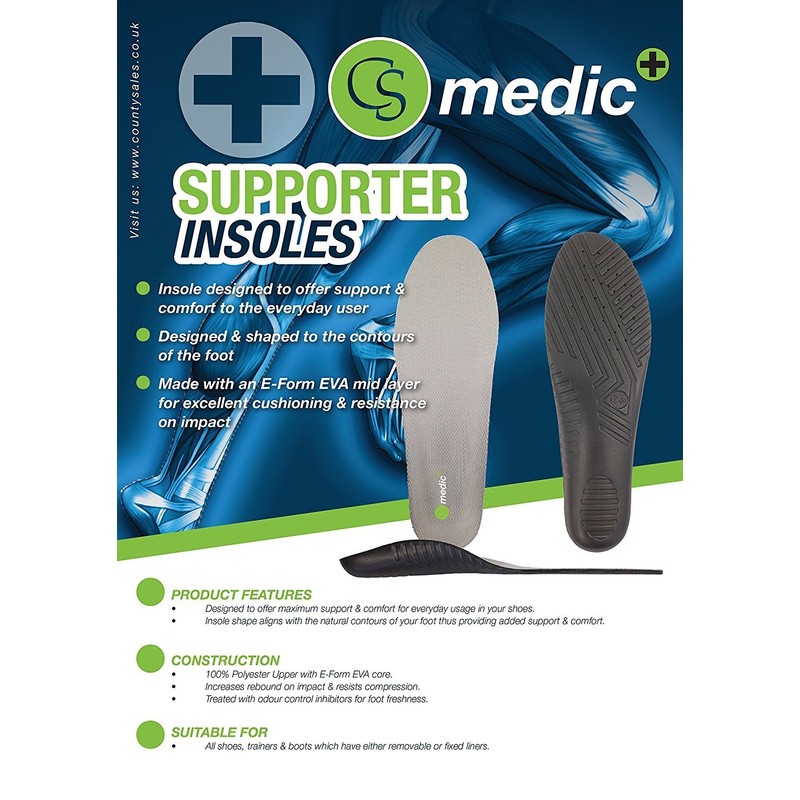 CS MEDIC SUPPORT INSOLE (orthotic) SIZES 3-12 (euro 36-45) (UK 8)