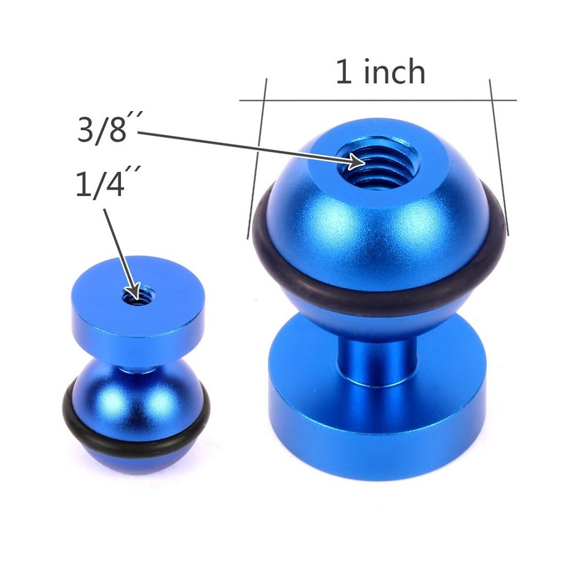 CS PRIORITY CNC Aluminium1'' Ball Adapter 1/4 3/8 Hole 1inch Ball Head Mount for Action Camera Underwater Photography Fill Light (Blue 2pcs)