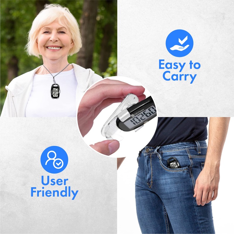 - ACCURATE COUNTS – An advanced multi-directional tri-axis Sensor is more accurate than older mechanical pedometers. It is equipped with a false start monitor which begins counting after 10 consecutive steps, to increase the accuracy of your overall counts. You can hold it in your hand, hang it from your neck using the included lanyard, place it in a pocket, bag or purse and it will track steps accurately every time. It is designed for continuous walking.