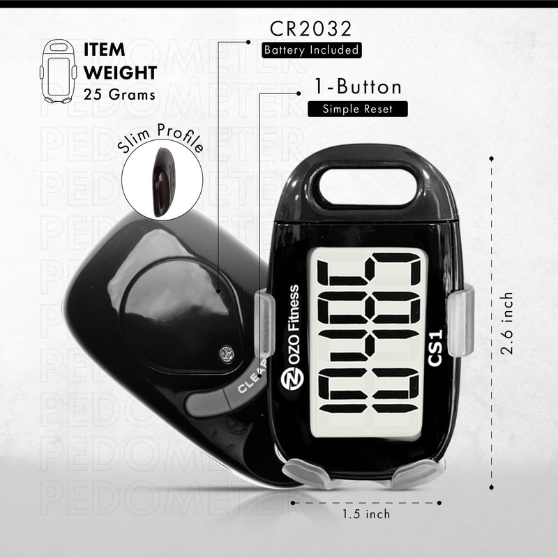 Keep Track Of Your Achievements and Reach Your Fitness Goals With a Pocket Digital Coach! Begins step counting after 10 consecutive steps. Are you looking for a simple but accurate way to keep track of your daily steps? Are you looking for an uncomplicated and easy to use pedometer to keep you motivated and on track with your fitness / rehab goals to achieve better health? Introducing The CS1 Simple Step Tracker Pedometer By OZO Fitness! Perfect for men, women, kids, seniors and the elderly with the large highly visible screen display and simple operation, our pedometer boasts a 1-Button design for hassle free use with no Smartphones, Non-Bluetooth and no-apps required. While you walk, jog or run, the accurate digital sensor tracks your steps all-day long to help you stay motivated! Why This Pedometer Is A Walk Out Must Have: Lightweight, compact 2.6 x 1.6 x 0.5 inches – multiple colors for customized look You control when to reset your step count Highly portable & discreet with FREE lanyard Online follow-along videos What’s In The Box: OZO Fitness CS1 Simple Step Tracker Neck Lanyard Cord Battery CR-2032 User Manual