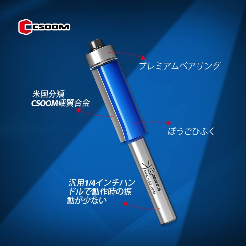 CSOOM 4-piece Trimmer Bit, 0.2 inch (6 mm) Diameter, Door Board Carving, Decorative Processing, Cutting Tools, Bit for Electric Trimmers, Woodworking Router Bit, Milling Cutter Set