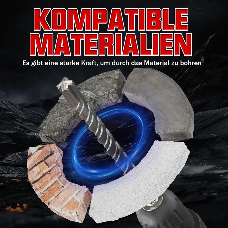- Compatible with all standard SDS-Plus rotary hammers: With the SDS PLUS holder, the drill bit fits in all standard SDS-Plus rotary hammers.