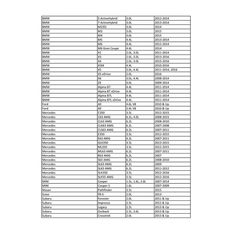 - Extra long spark plug sockets required for particular applications