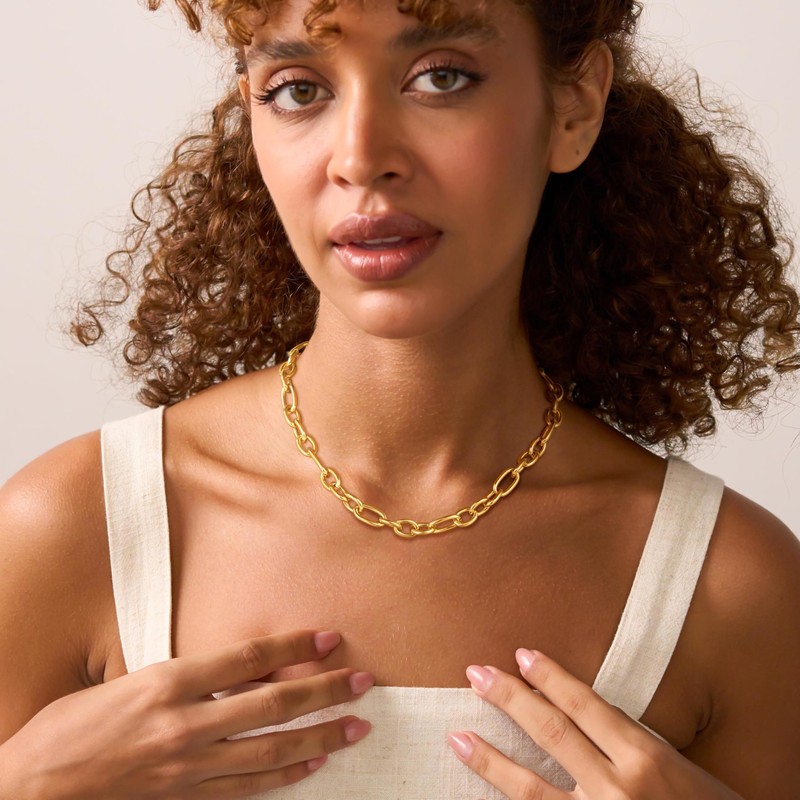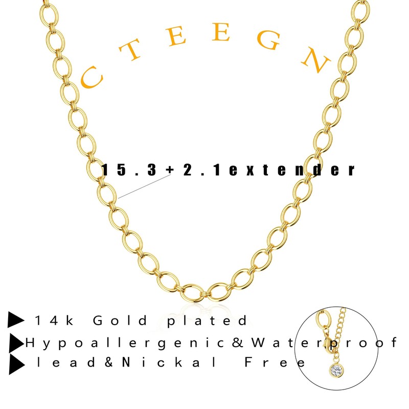 CTEEGN Chunky Gold Paperclip Necklace for Women Statement Thick Trendy Dainty 14K Yellow Chain Link Necklace Waterproof Simple Tarnish Herringbone Summer Choker Layered Everyday Jewelry Gifts