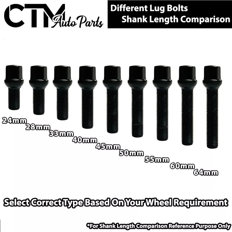 - Lug Bolts Shank Size: 1.1"(28mm)