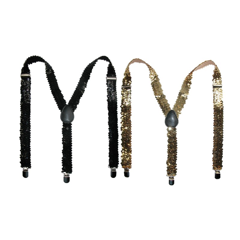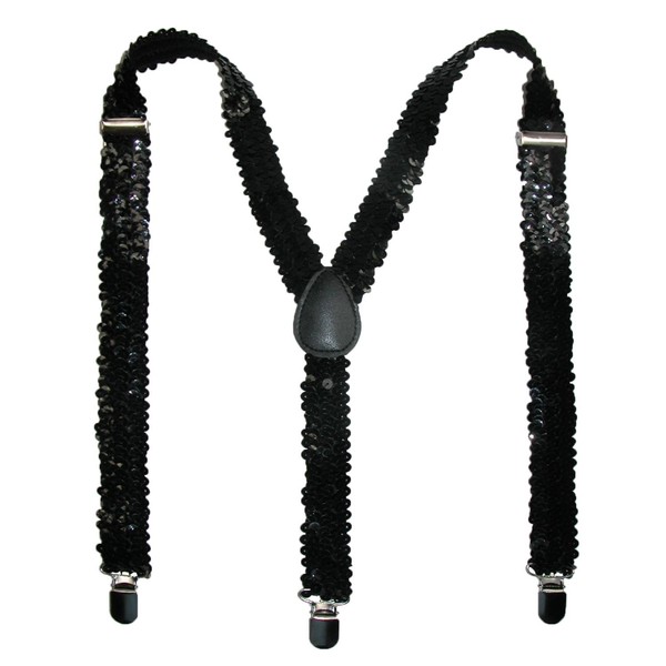 CTM® Women's Elastic Sequins Clip-End Suspenders, Black
