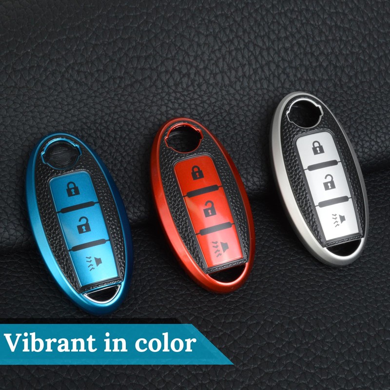CTRINEWS for Nissan Key Fob Cover with Metal Braided Rope Keychain, Advanced Soft TPU Surface Grain Key case for Altima Maxima Key Shell (3 Button) (Braided Rope Blue, B)