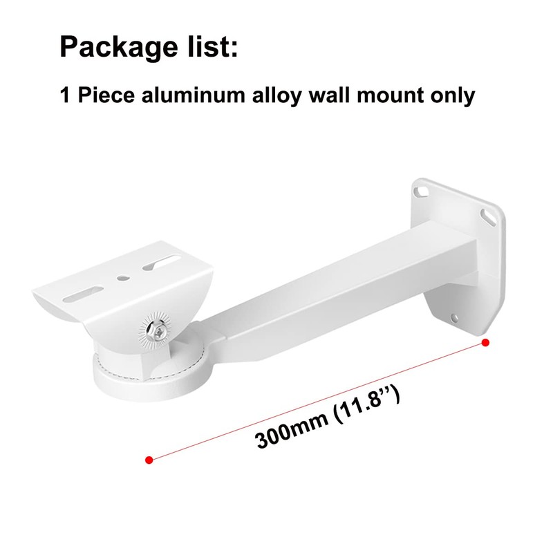 • Quality metal material also ensures durable and stable performance. PACKAGE CONTENT: 1x Camera Wall Mount, 2x Screws,Dimension: 11.8 inch camera mounting bracket Weight ,capacity: 22 lb