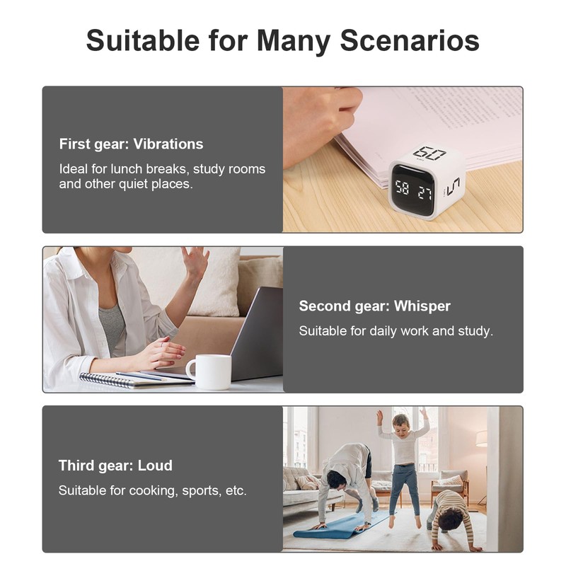 - 【Time Management】: You only need to flip the timer to select the 4 options of 15/20/30/60 minutes alarm clock, and then the timer will start counting down. You simple to operate buttons to customize the timing time. Can finish tasks efficiently.