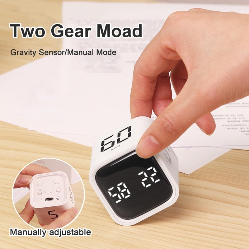 Cube Timer Gravity Sensor Timer Exercise Timer Vibration and Mute Modes Custom Timing 5/10/30/60min for Work, Study,Kitchen Cooking(White)
