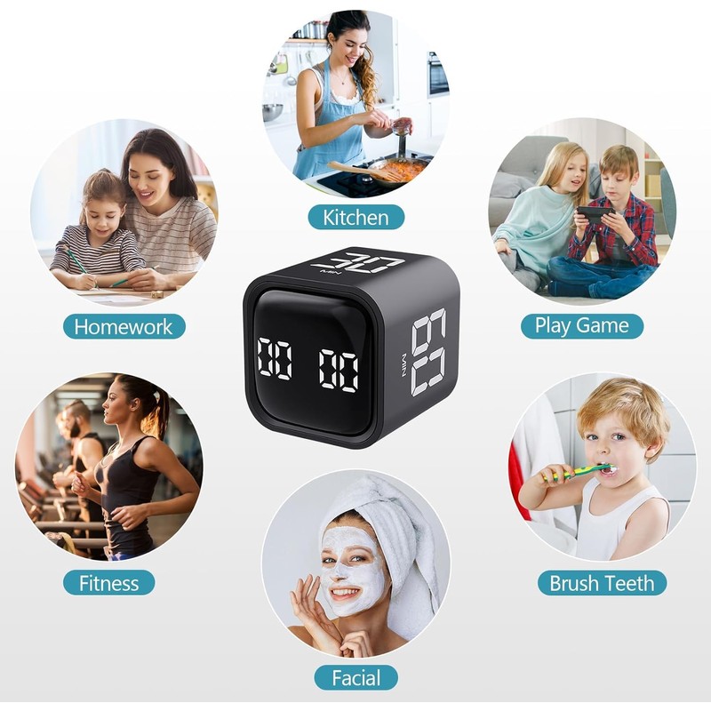 A good helper in your life. A Nice Tool to Kids Manage Time. Small size (1.7 x 1.7 x 1.7 inch) and easy to carry,home, company, gym, where are you, where is it. 15-20-30-60,different time settings,multiple choices, multiple changes. You can set the countdown time you need. It is convenient for you to manage your time and complete what you need to do at the specified time. You can use it in daily life, study, cooking, and work.