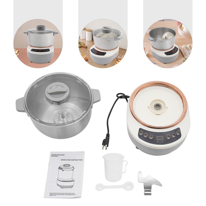 • 5L LARGE CAPACITY: The 169.09Oz large capacity basin can hold more water and flour to meet the cooking needs of home and commercial use. The small lid at the top of the product can be opened to make it easier for you to add water when kneading dough. The clear digital screen makes it easy for you to check the time.
