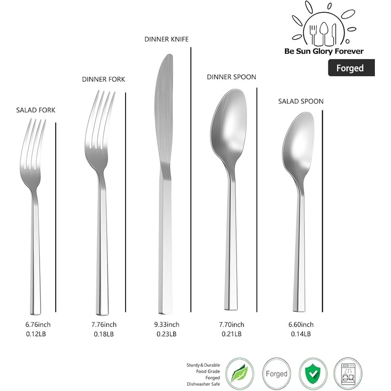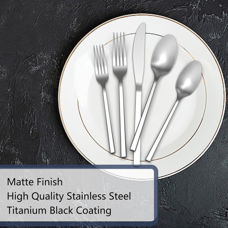 - 【CRAFTSMANSHIP】 :Expertly crafted from 18/10 stainless steel. Heavy duty, matte finish, rust proof, antioxidant, it won't fade or crack, exactly what you expect from your silverware.