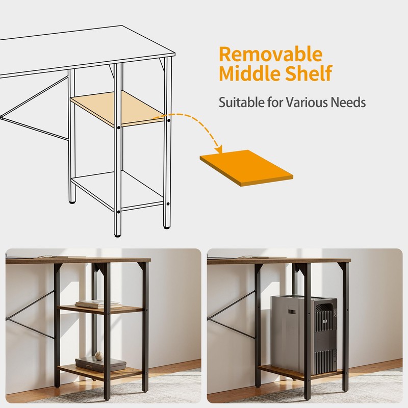 - Enhanced Storage Space: With two-tiered shelving, this desk provides ample storage for your workspace. Whether it's files, books, or small items, you'll have a tidy and organized setup.