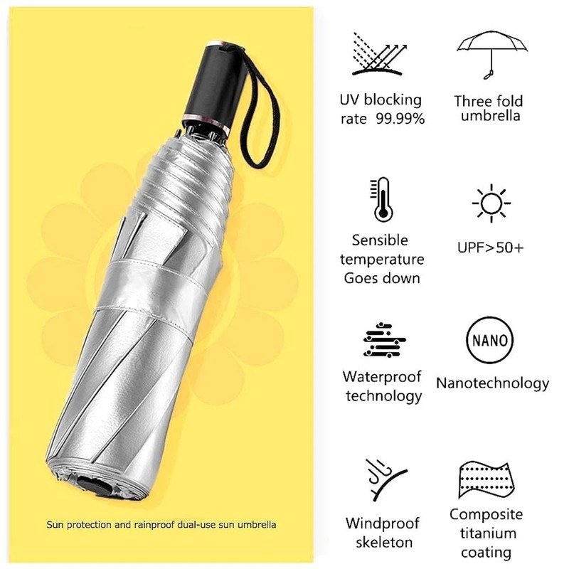 CUBY Sun UV Umbrella Folding Travel Compact Umbrella Reinforced Windproof Str...