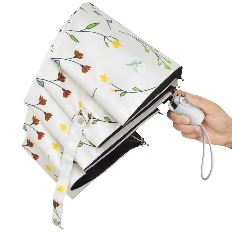 Cuby UV Sun Umbrella Compact Folding Travel Umbrella Auto Open and Close for Windproof, Rainproof & 99% UV Protection Parasol with Black Anti-UV Coating (Butterfly Flower)