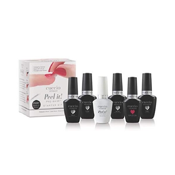 Cuccio Veneer Peel It! Pre-Base Starter Kit – 6-Piece Gel Polish Set – Includes Prep, Fuse, Peel It! Pre-Base, Base, Top Coat, and Heart & Seoul Color – 13 mL Each