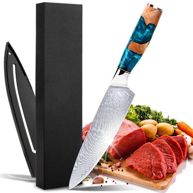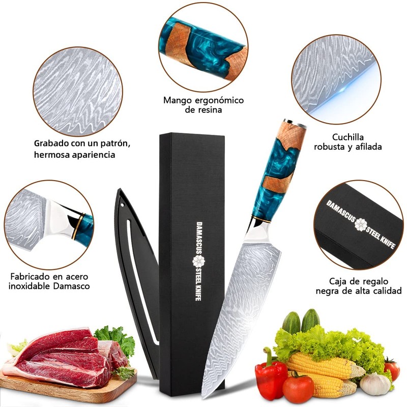Cuchillos Chef,Cuchillo Para Chef Acero Damasco,Profesional Afilado Con Alto Contenido Cuchillo De Cocina,Mango ErgonóMico, Cuchillo De Cocina Multiusos Superior Para El Hogar Y El Restaurante