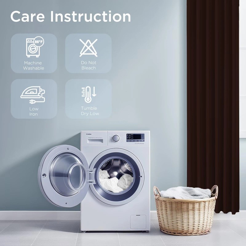 - CARE INSTRUCTIONS: Machine washable below 86°F on gentle cycle. Room darkening Fabric will not be ruined after washing. Iron on low setting as needed. Do not bleach. Tumble dry low