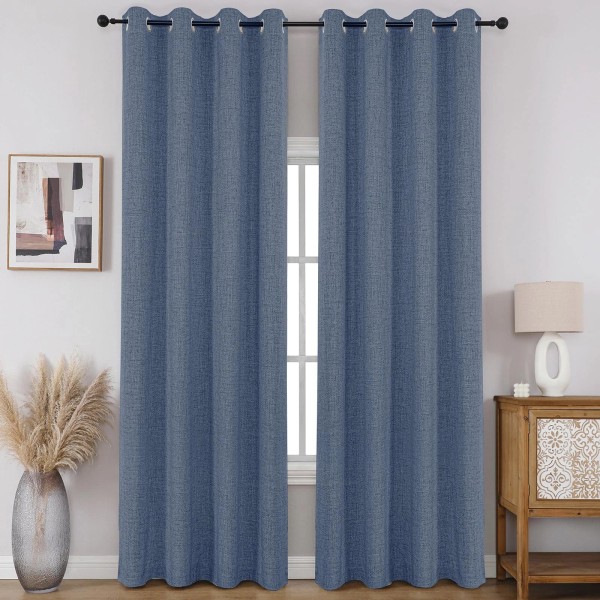 CUCRAF Sky Blue Faux Linen Blackout Curtains 52X84 Pack Of 2 Thermal Insulated Heavy...