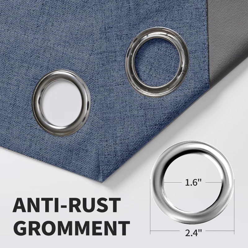 - Thick Material and Package:Well made and the material is thick,durable and a little heavier than the common blackout curtains. 2 panels per package and each panel measures 52 inches Wide x 84 inches Long. Each faux linen curtain panel has 8 silver Grommets with 1.6 inch inner diamter,which makes the curtains easy to install and slide