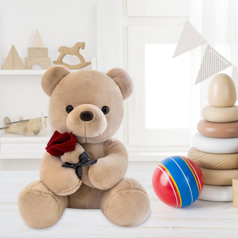 - 1. Cute design: this kawaii Valentine's Day teddy bear plushie holds a rose in hand, it is a teddy bear doll that can bring love and happiness. Soft toy in 25 cm characterises its cute design with snub nose ideal for falling in love.
