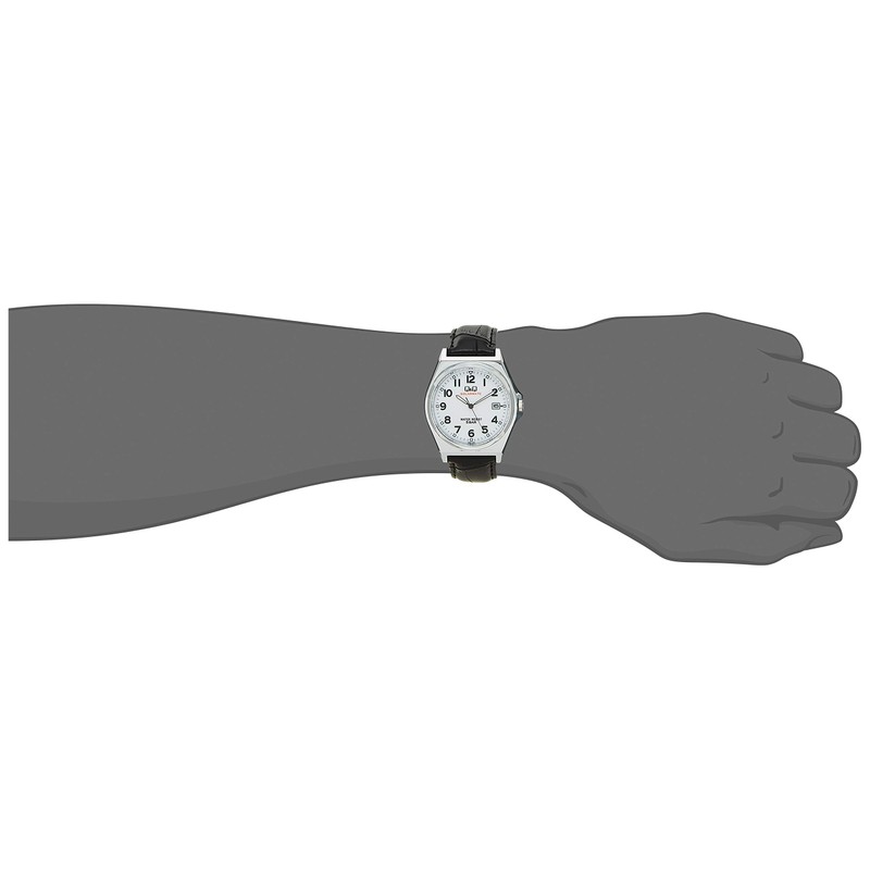Cue & Cue H060-304 Men's Analog Solar Waterproof Watch with Leather Strap White Dial Black, Black