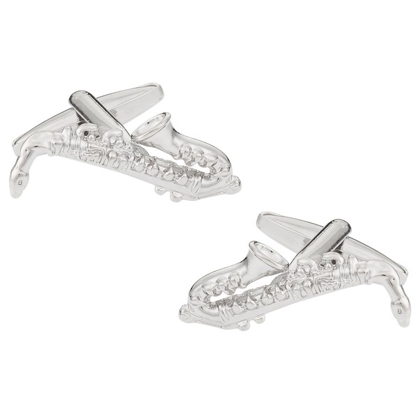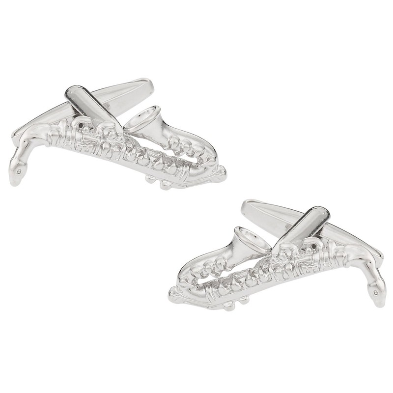 Unique saxophone cufflinks set in a silver-tone with incredible detail. Conservative enough for the office, but far from boring. Have fun with these cufflinks, which are a BIG conversation piece! Pair with any classic shirt and pull out similar or complementary hues in a shirt or tie. Each pair is finished by hand to ensure a quality, lasting pair. Nice lightweight makes it suitable for both shirts and blouses. Set in a silver-tone setting so it never needs polishing! Covered by Cuff-Daddy's product guarantee Great for wedding parties!