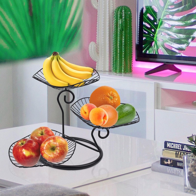 CUKE2BEET 3 Tier Fruit Basket, Multi Tier Fruit Holder Countertop Fruit Basket, Fruit Bowls Stand for Fruit Vegetable (Black)
