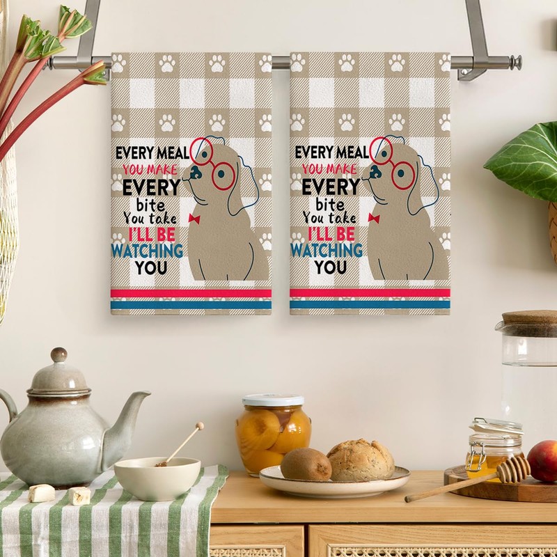 - Funny dog kitchen towels decorative set, ultra absorbent, soft fabric, reusable and washable.