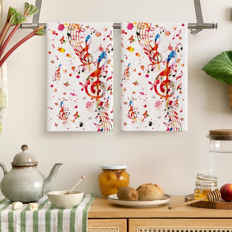 - Music kitchen towels decorative set, ultra absorbent, soft fabric, reusable washable and durable.
