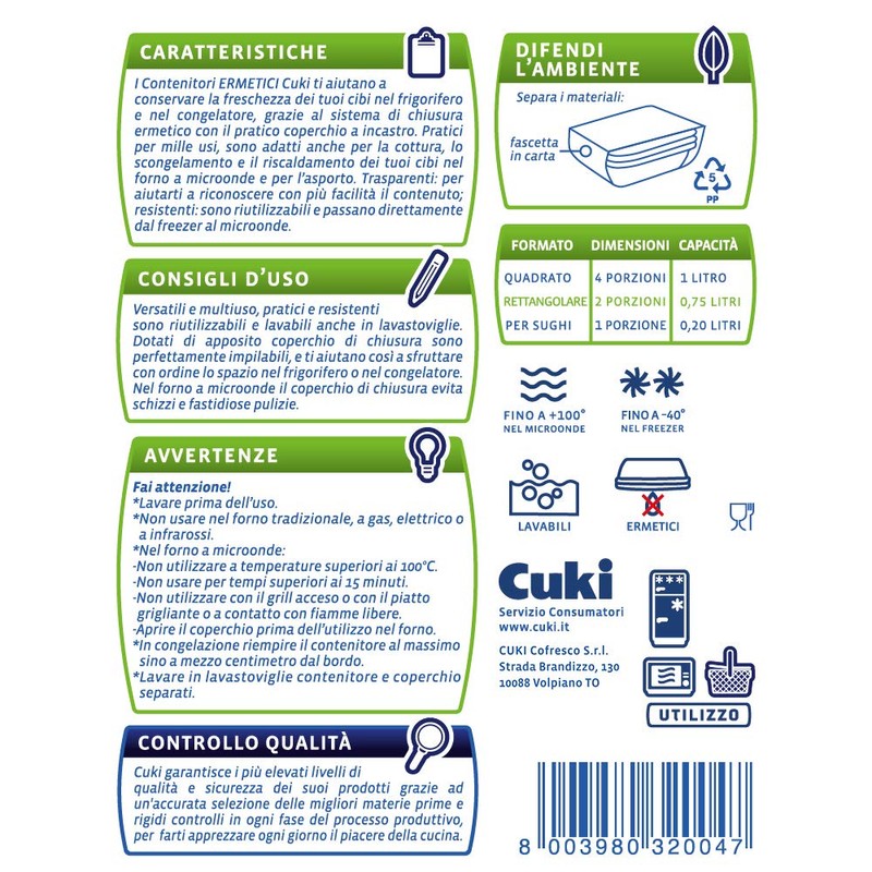 - Die luftdichten Behälter von Cuki erfüllen Ihre praktischen Bedürfnisse. Dank des luftdichten Verschlusses sind sie ideal für die Frischhaltung Ihrer Speisen im Kühlschrank und Gefrierschrank.