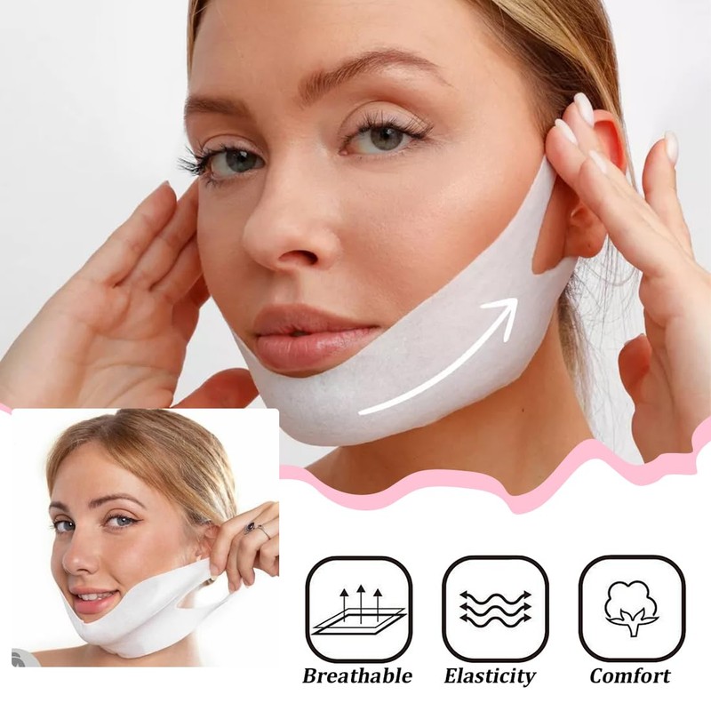 - Diseño en forma de V: la máscara de 3 piezas se adapta a su barbilla y mandíbula en forma de V para levantar y dar forma a la parte inferior de su rostro. Este diseño ayuda a reducir la apariencia de la papada y a crear una línea de mandíbula más definida.
