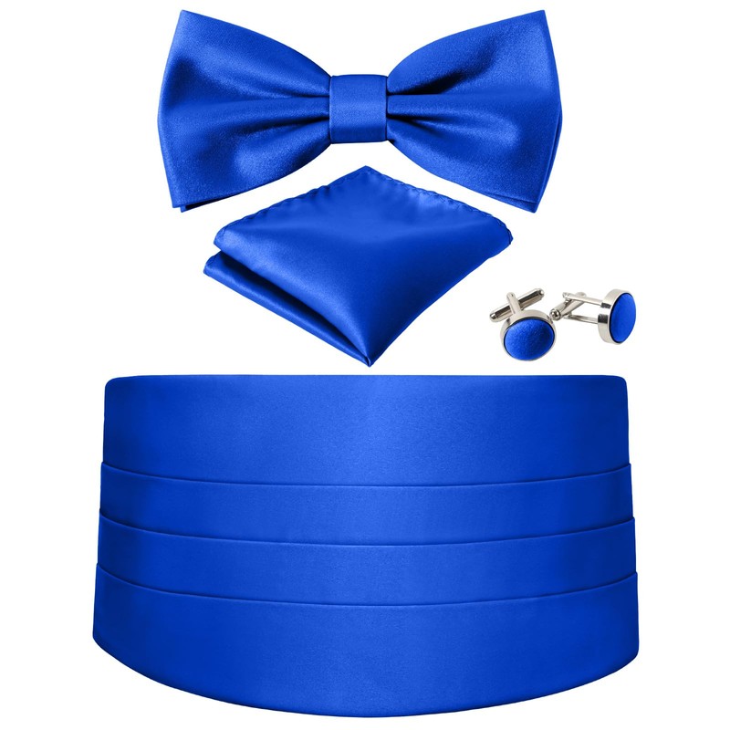 Cummerbund and Bow Tie Set Solid Color Adjustable Formal Men's Royal Blue Cumberbund Bowtie Cufflinks Set & Pocket Squares