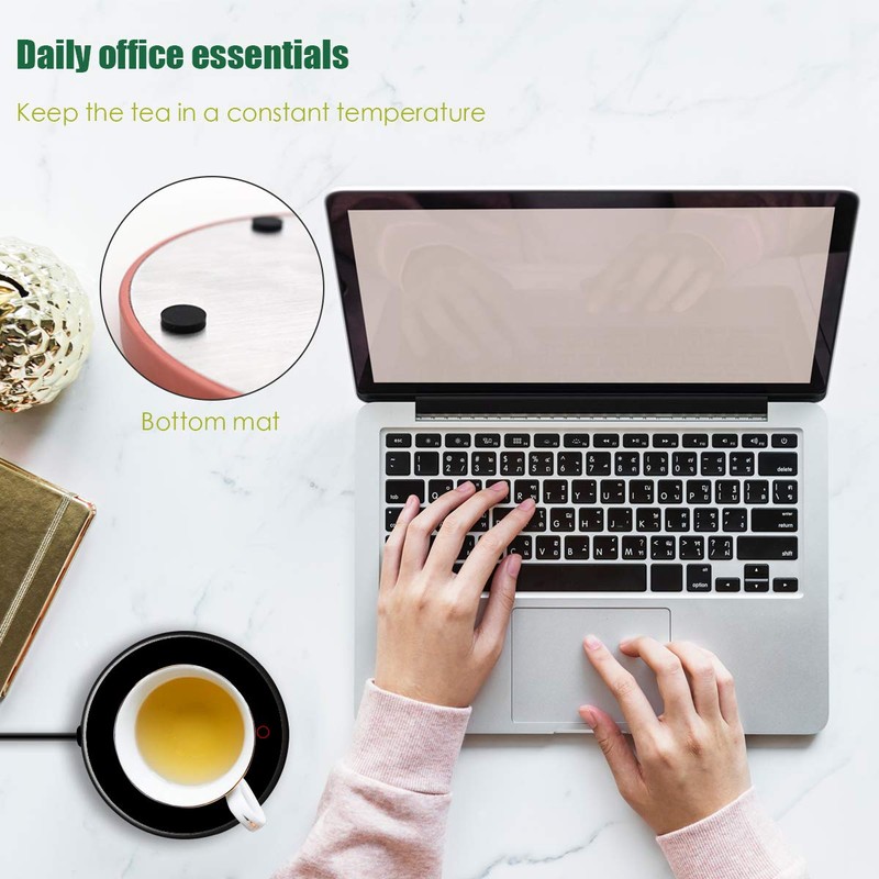 - Safe and reliable This desk coffee warmer is an energy-saving radiator made from waterproof, tempered, easy to wipe clean material. This 15W low power coffee warmer focuses heat and warms up quickly. it is safe, it turns off automatically after 8 hours of heating.