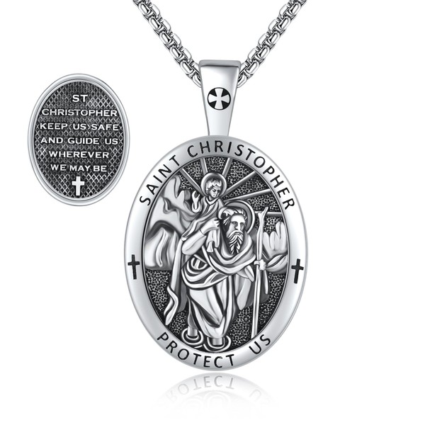 CUPENDA St. Christopher Necklace S925 Sterling Silver Saint Christopher Pendant Necklace St Christopher Jewelry Gifts for Men