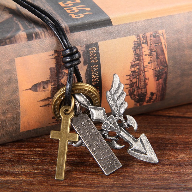 This cross pendants with angel wing cross army style design, leather chain makes it very easy to use.