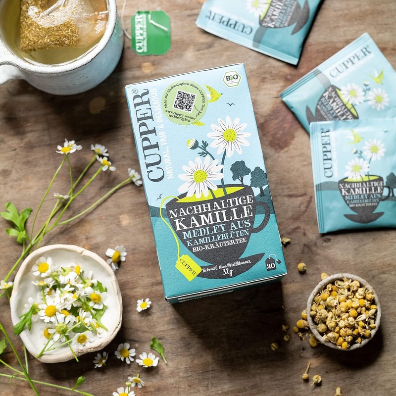 Cupper Bio-Kräutertee Nachhaltige Kamille, 4er Pack, 80 ungebleichte Teebeutel, umweltfreundlich, fair gehandelt