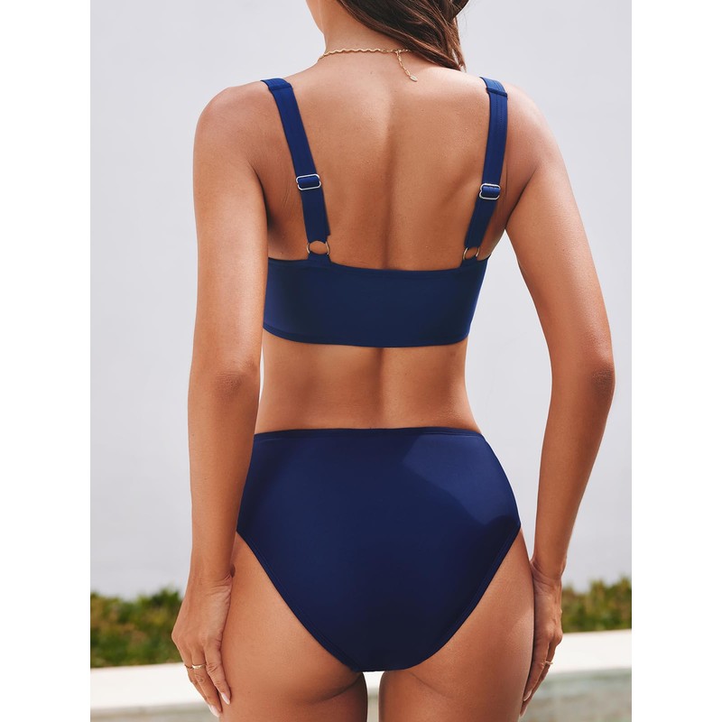 - ABOUT ME: Two piece bikini with elegant cross ruffles, sweetheart neckline, wide adjustable straps, high waist bikini bottoms and tummy control effect